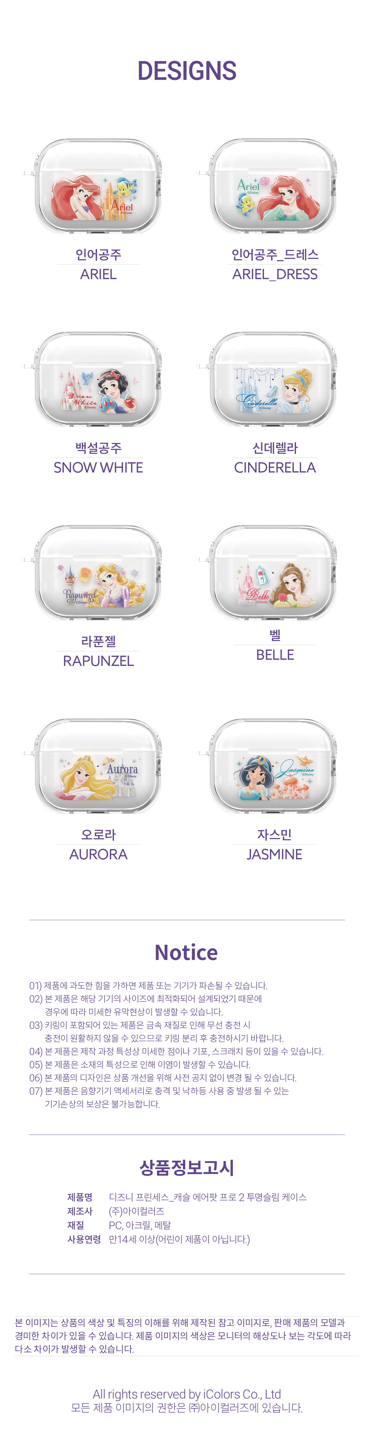 Disney - Clear Slim - Airpods Pro 2 Case 公主系列 一體式貼身透明硬套 BB