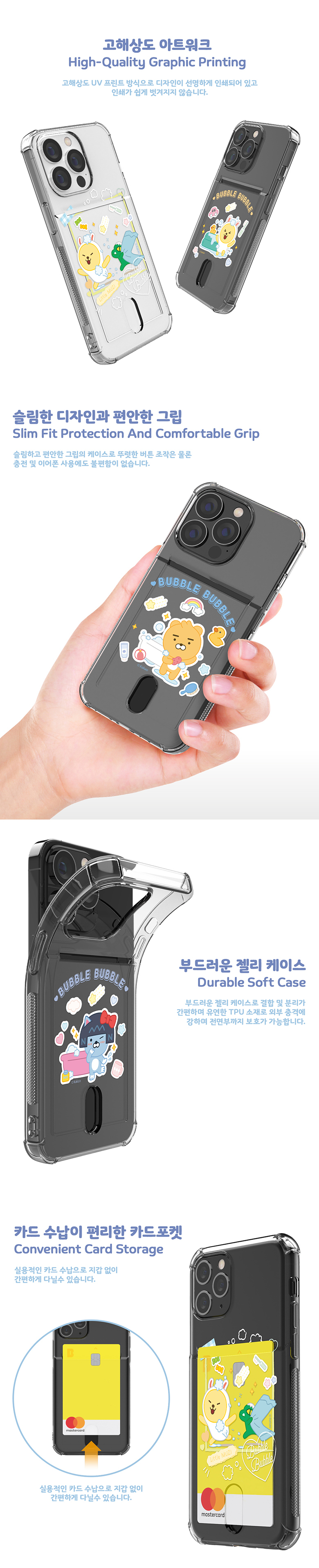 Kakao Friends - Clear Card Soft Case - 透明防撞卡槽手機保護軟殼 S2 14 S23