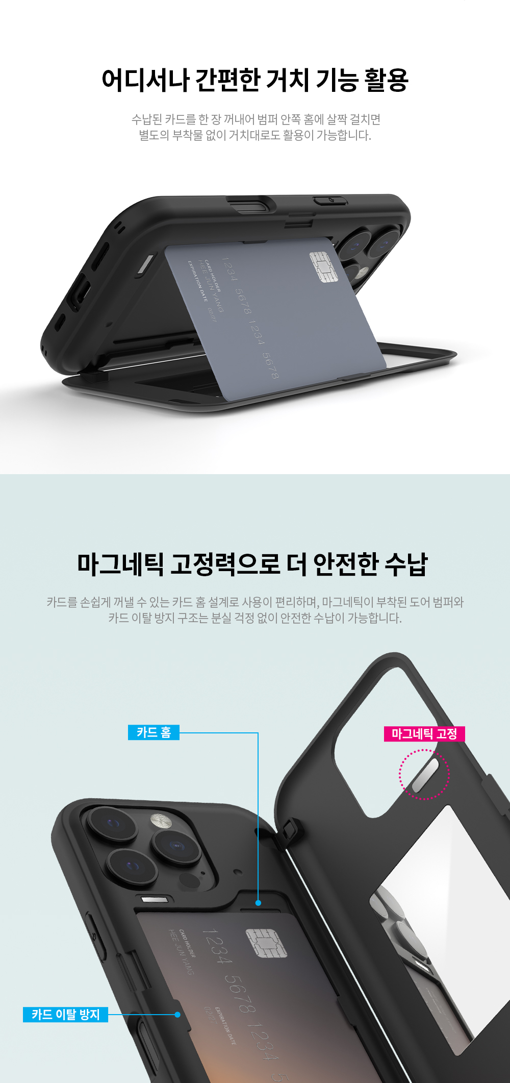 隱藏卡夾 - 翻蓋卡夾可放1-2張卡,方便攜帶証件卡片及拍卡