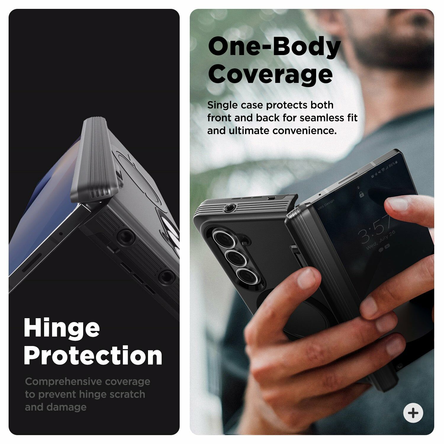 半自動滑動設計 - 附帶半自動鉸鏈保護,方便開合,亦可在手機摺合時保護手機邊框
