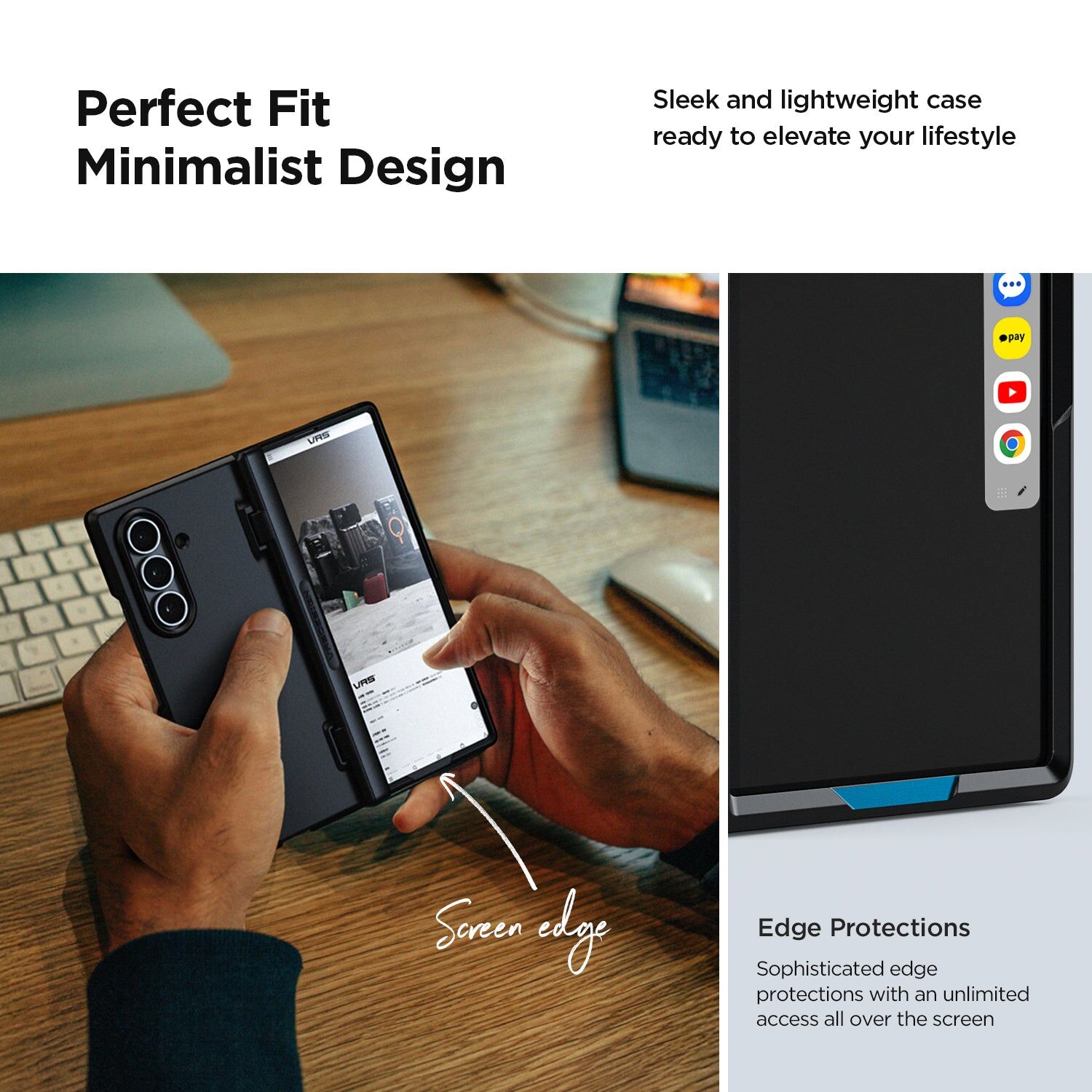 半自動滑動設計 - 附帶半自動鉸鏈保護,方便開合,亦可在手機摺合時保護手機邊框