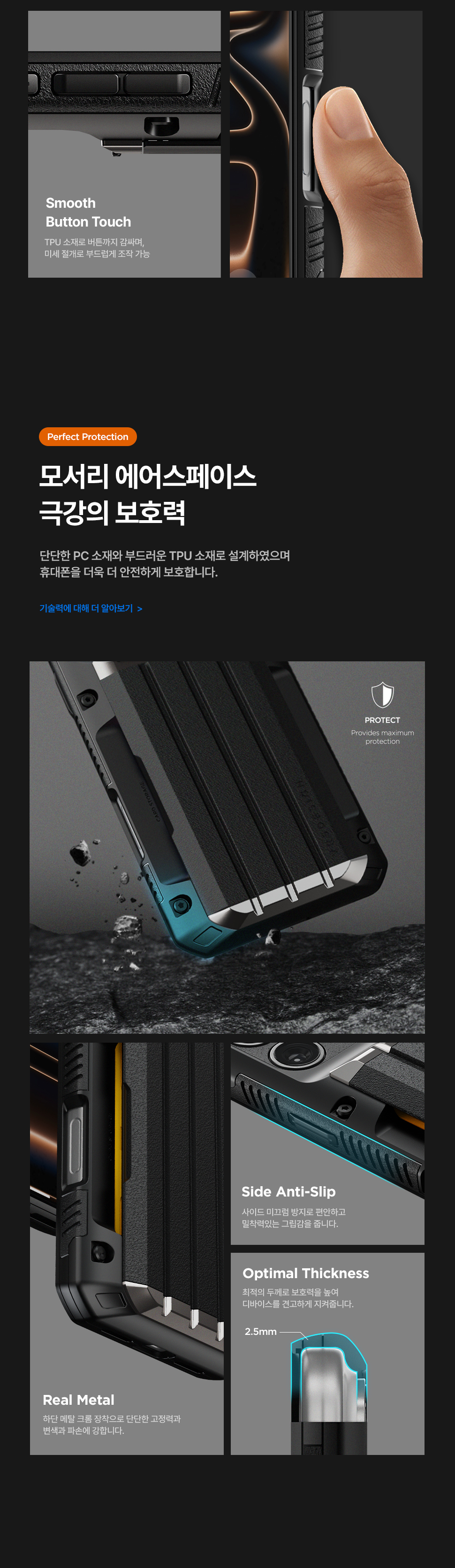 屏幕保護 - 裝備後手機殼邊緣會高於屏幕,減少屏幕受磨損的機會