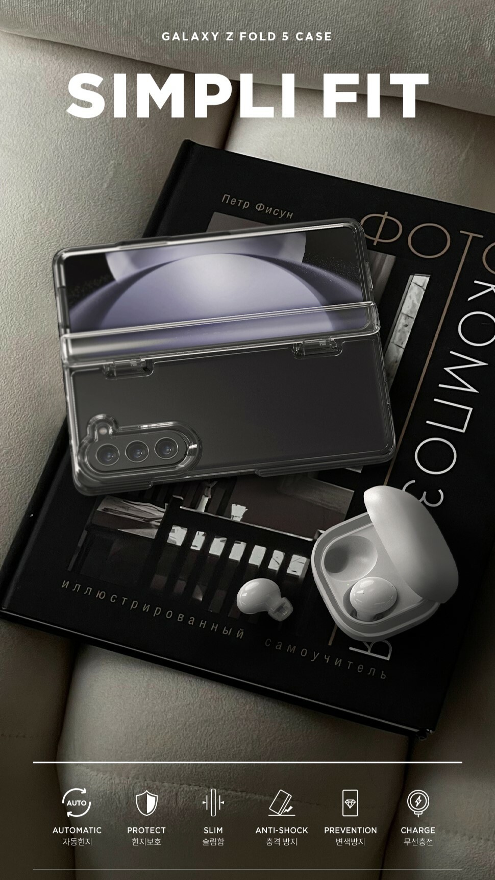 【Fold 5 部分現貨】[筆槽/普通 鉸鏈蓋] VRS Design - Simpli Fit - Galaxy Z Fold 5 Case 貼身透明鉸鏈保護手機殼
