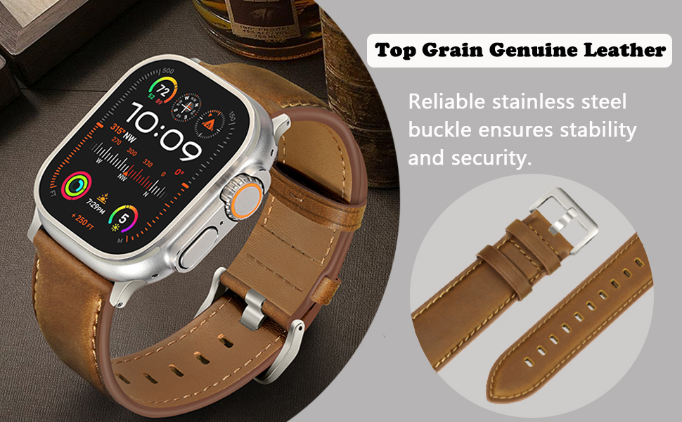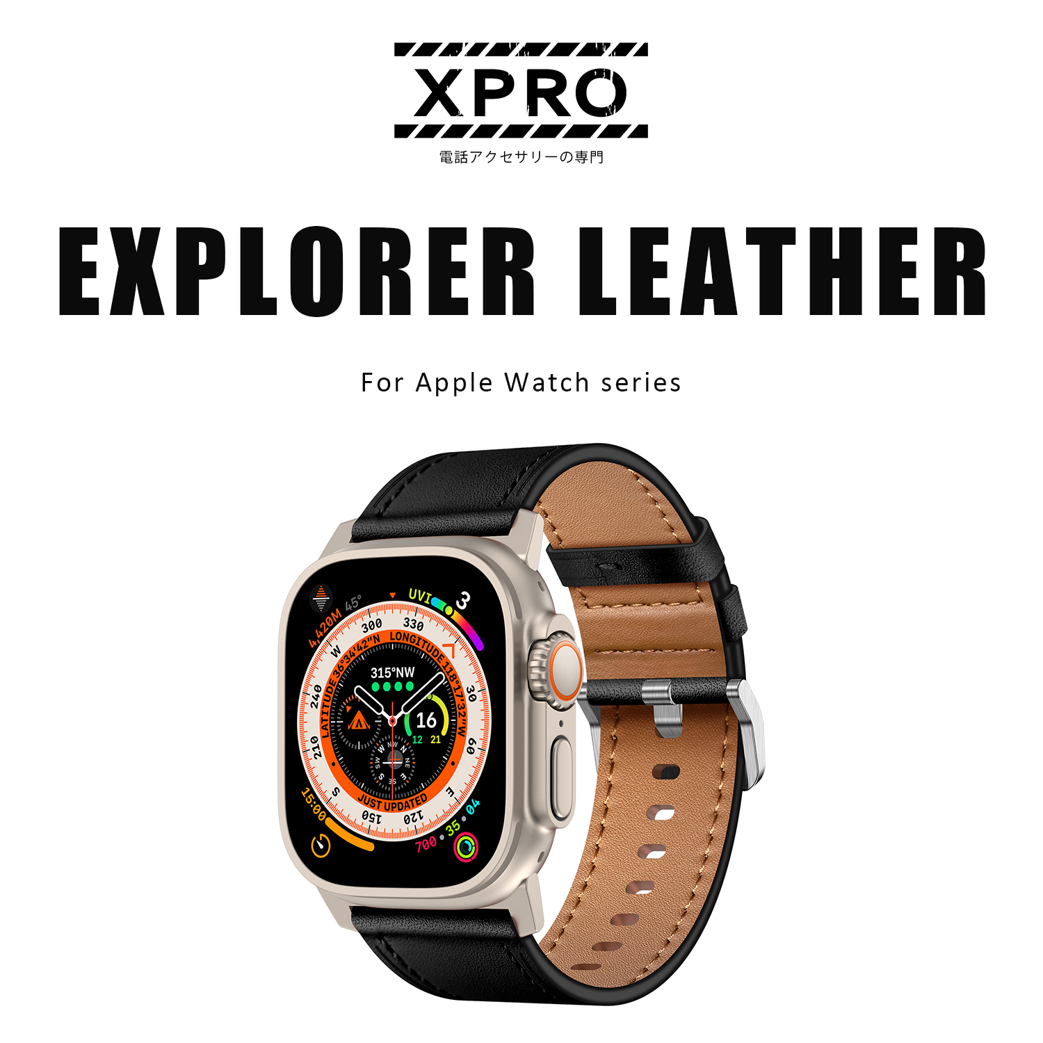 XPRO - Explorer Leather - Apple Watch Strap 頭層牛皮不鏽鋼扣智能手錶帶