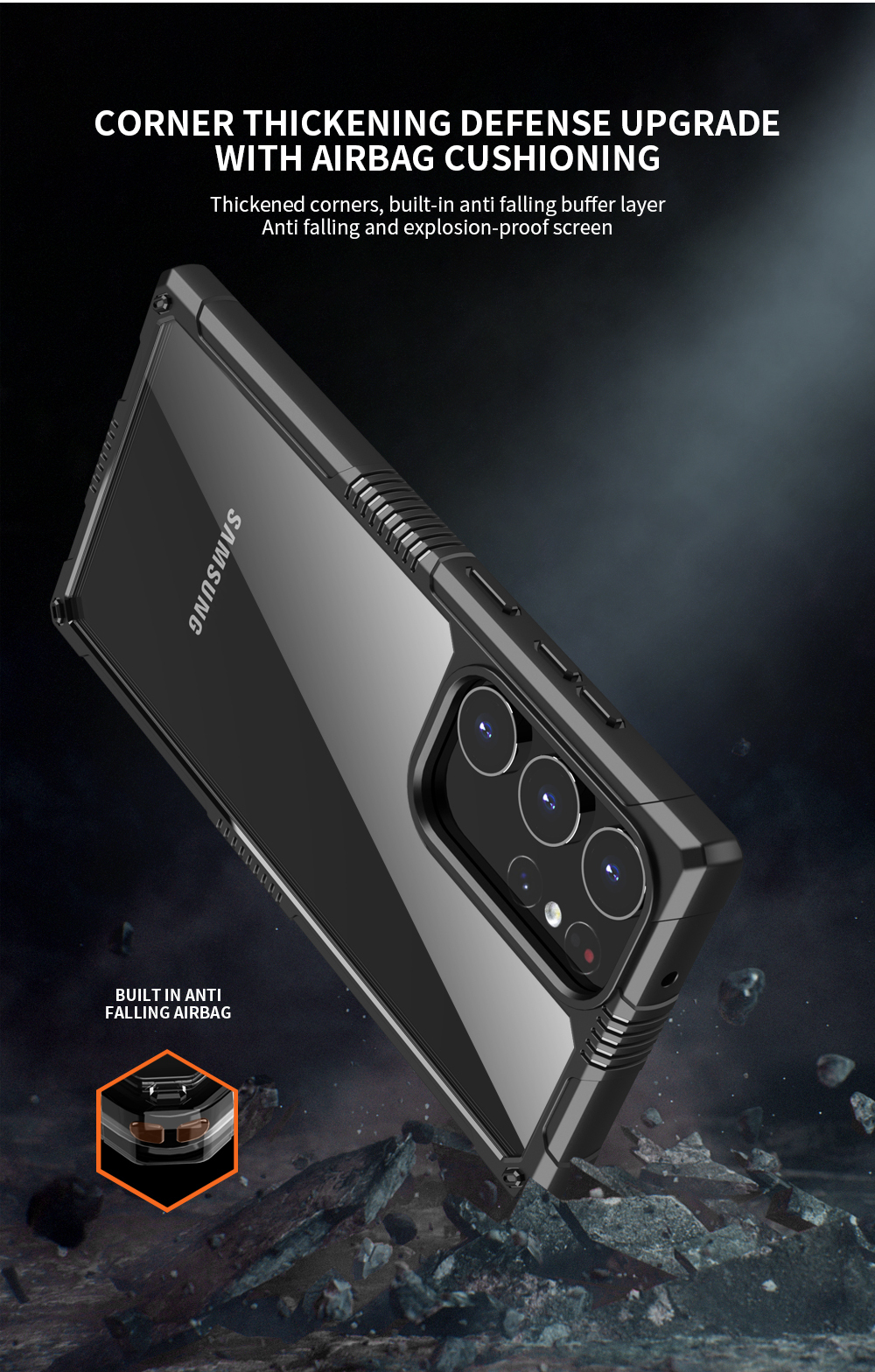氣囊防撞 手機殼墜落時最常接觸地面的四角加入氣囊,有效吸收衝擊力