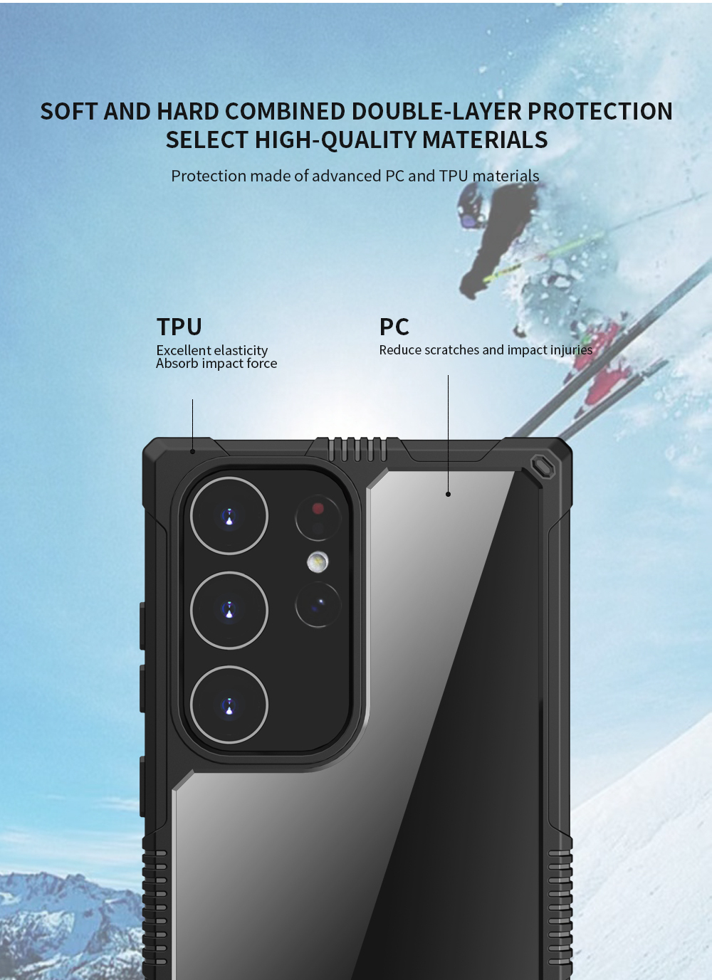 鏡頭保護 手機套裝備後鏡頭邊緣位置會高於鏡頭,減少鏡頭受磨損的機會