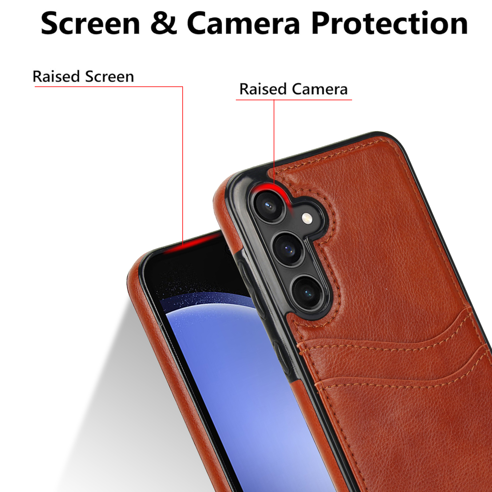 鏡頭保護 - 手機套裝備後鏡頭位置邊緣會高於鏡頭,減少鏡頭受磨損的機會