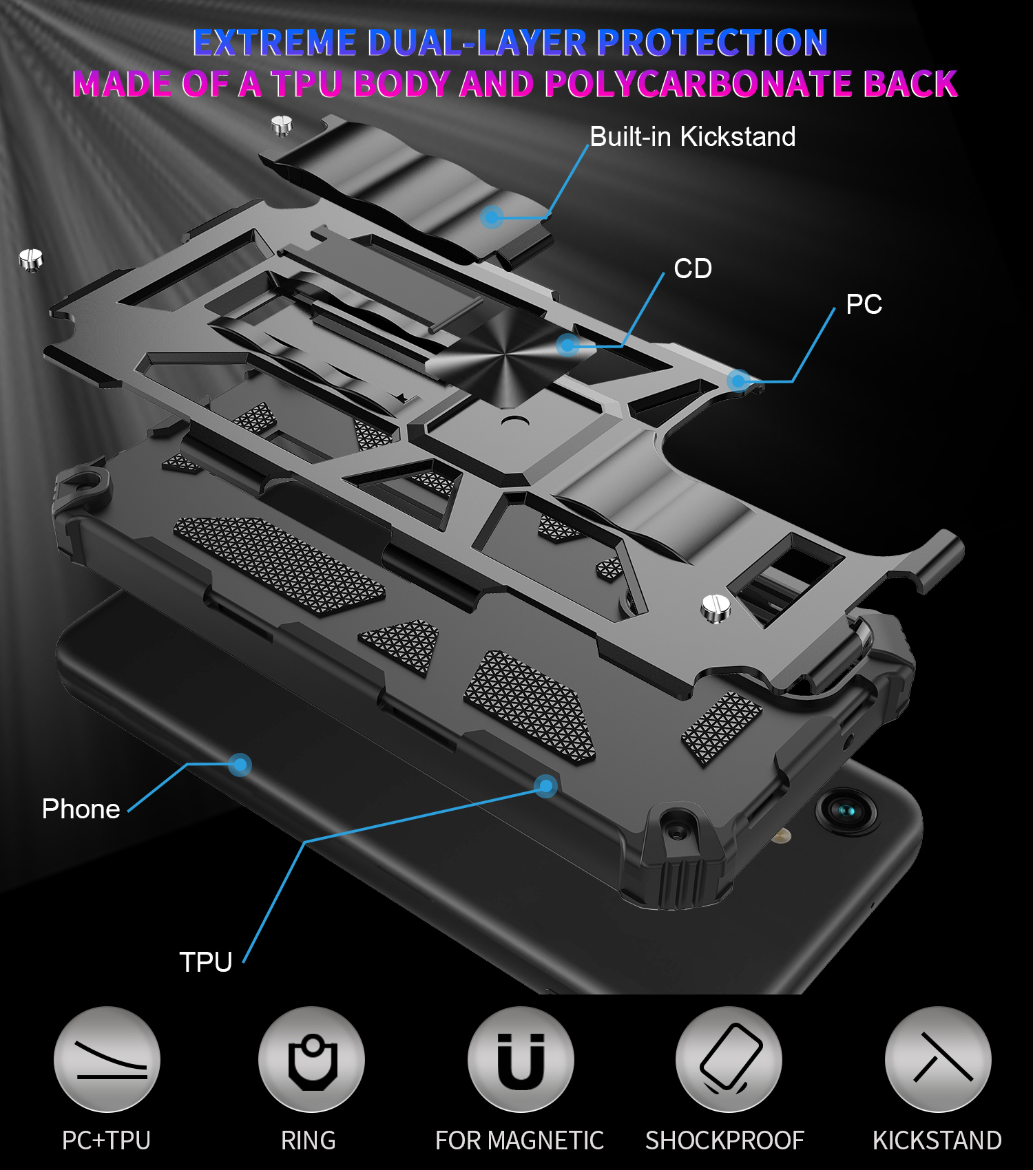 XPRO - Kick Stand Shield - Samsung A56 A36 Case 高度防撞隱藏支架磁吸手機保護殼