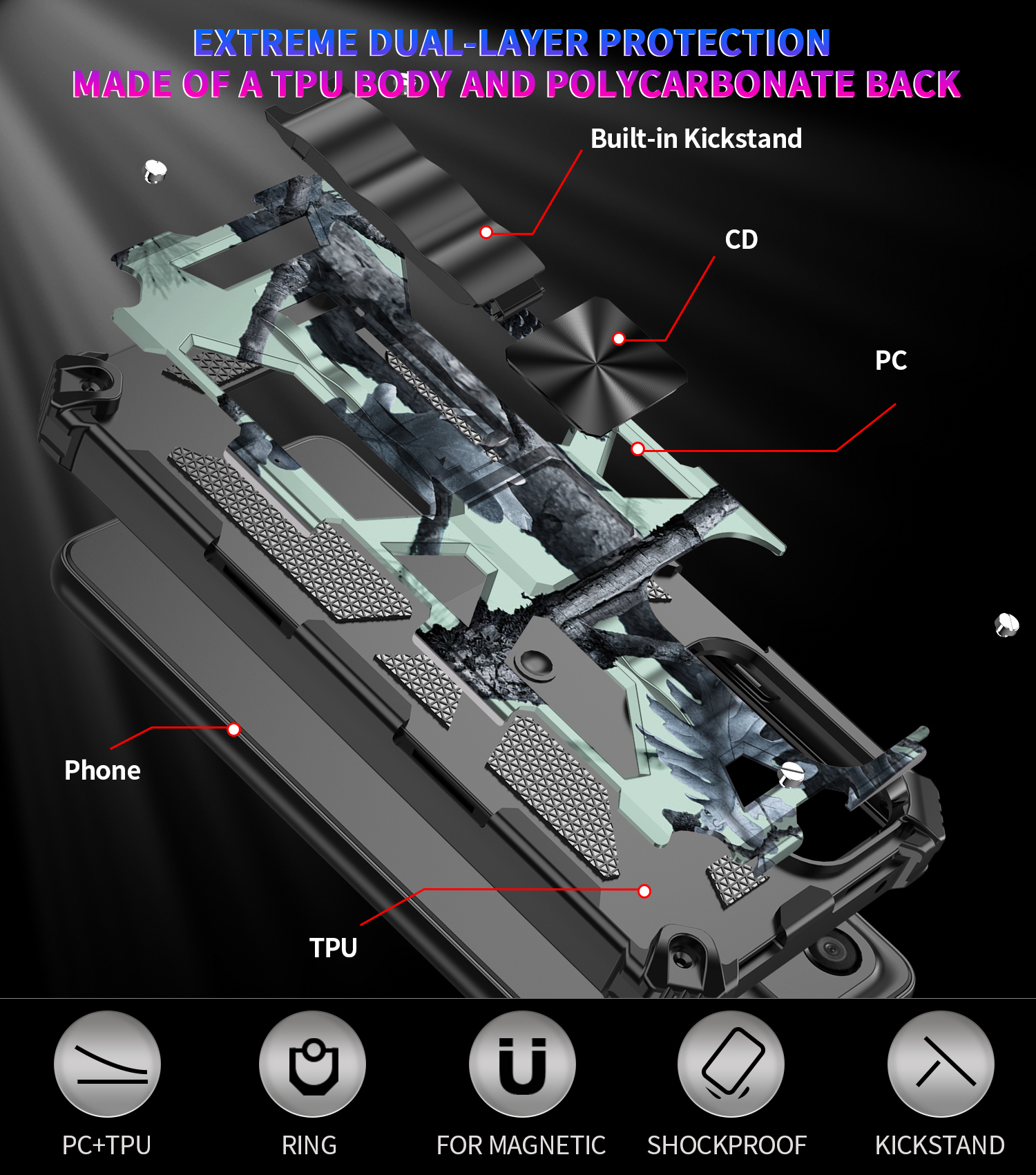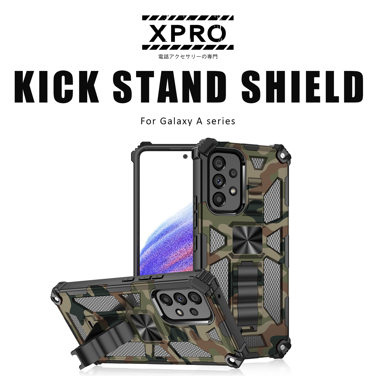 XPRO - Kick Stand Shield - Samsung A55 A35 Case 迷彩高度防撞隱藏支架磁吸手機保護殼 A16