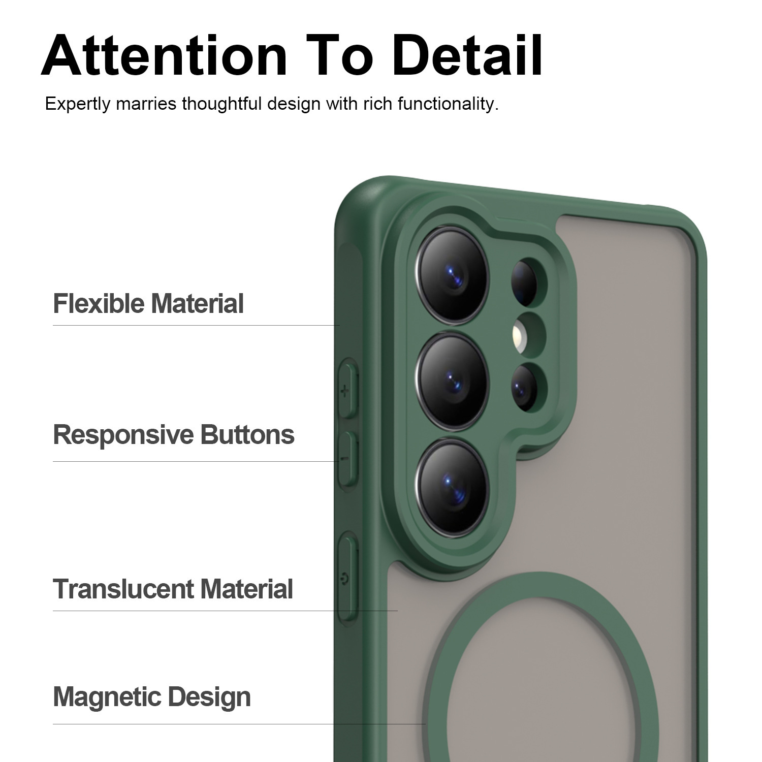 自帶磁圈 - 手機殼自帶強力磁片,帶殼也能穩固用無線充電