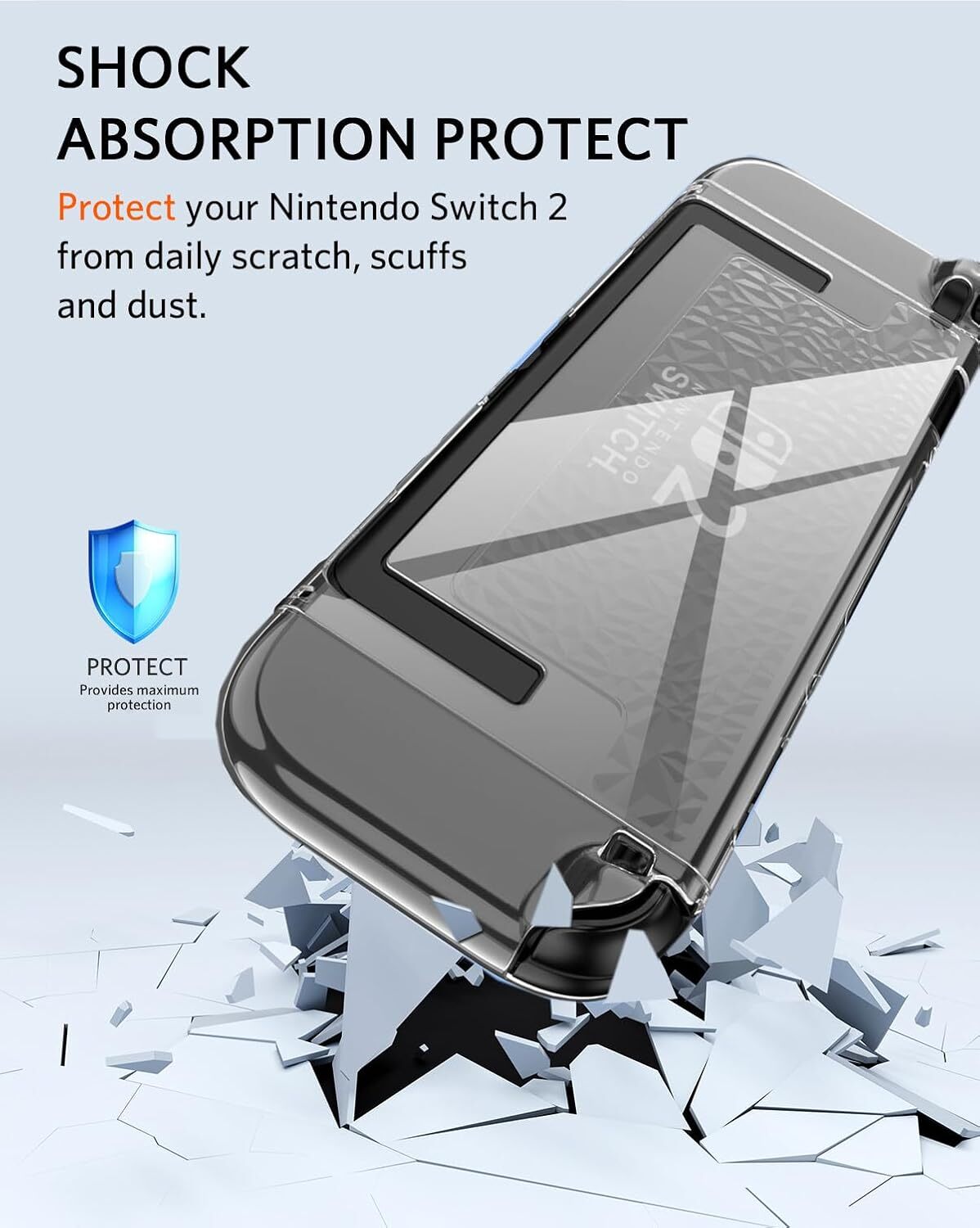 XPRO - Crystal Clear - Nintendo Switch 2 Case 貼身防撞透明遊戲主機保護殼【兼容底座】