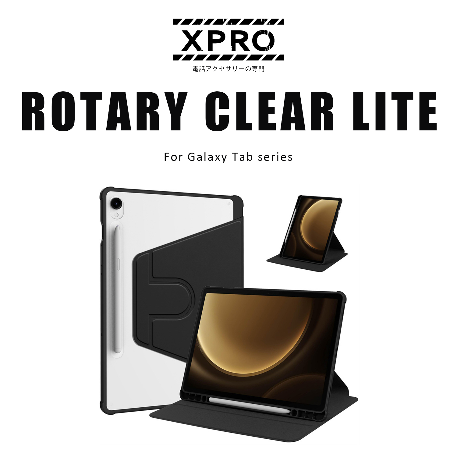 XPRO - Rotary Clear Lite - Samsung Galaxy Tab Case 皮革蓋面旋轉底殼高度防撞透明筆槽平板保護硬殼